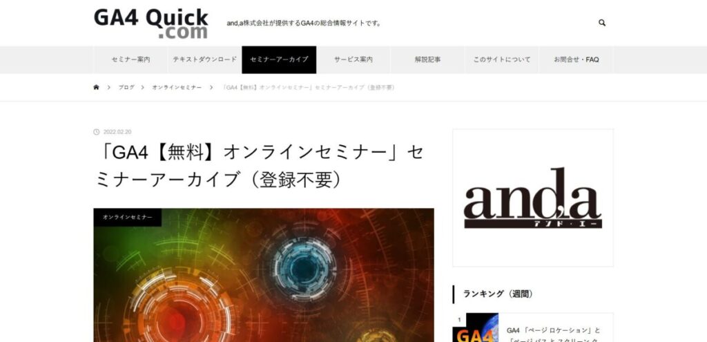GA4 Quick.com は、and.a社が運営するGA4の総合サイトです。