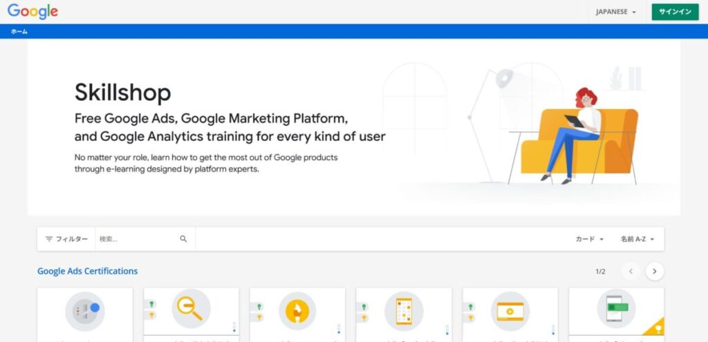 アナリティクス アカデミーは、Googleが提供する無料オンラインコースです。GA4に関するコースは4種類用意されています。