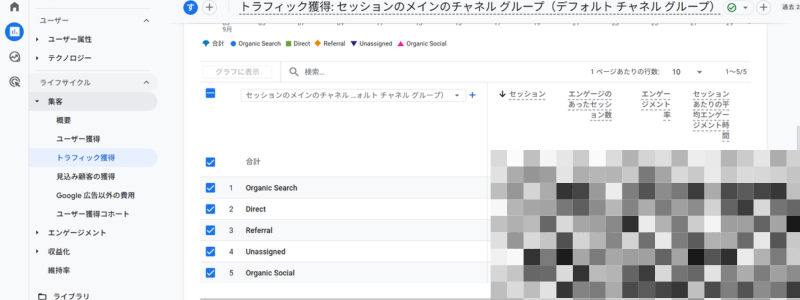 通常、セッションの発生数が多いチャネル(デフォルトチャネルグループ)が順に表示されます。